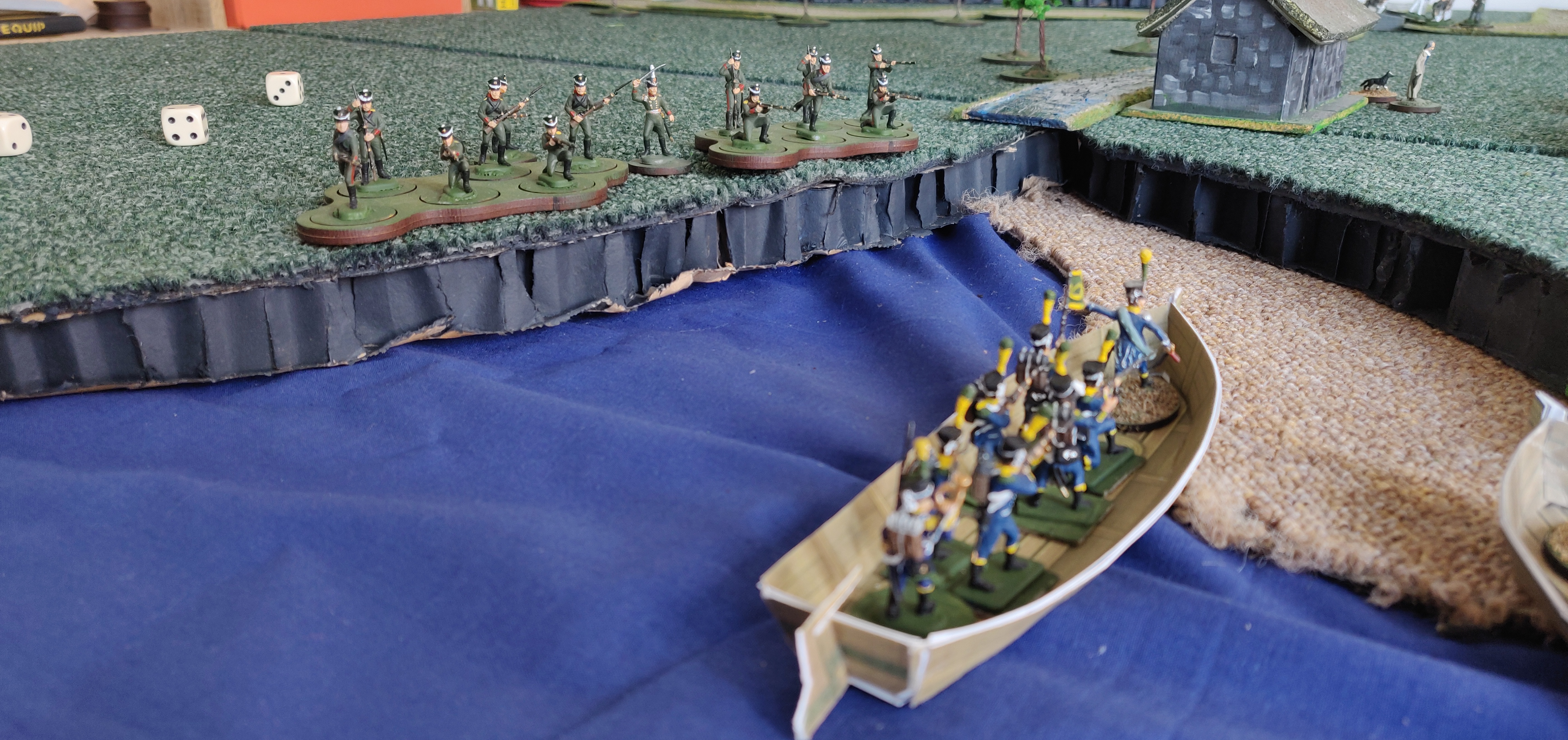 | 23 June 1812 | Crossing the Niemen | We successfully captured the far bank of the Niemen, but encountered stronger resistance than expected from Russian jager and hussars. The sailors held the beach and the Spanish worked around the Russian flank and we held on. | img_20230323_112339.jpg img_20230324_142159.jpg img_20230324_142147.jpg | +3 victory points, 1 wagon, and 4 sacks of supplies. |